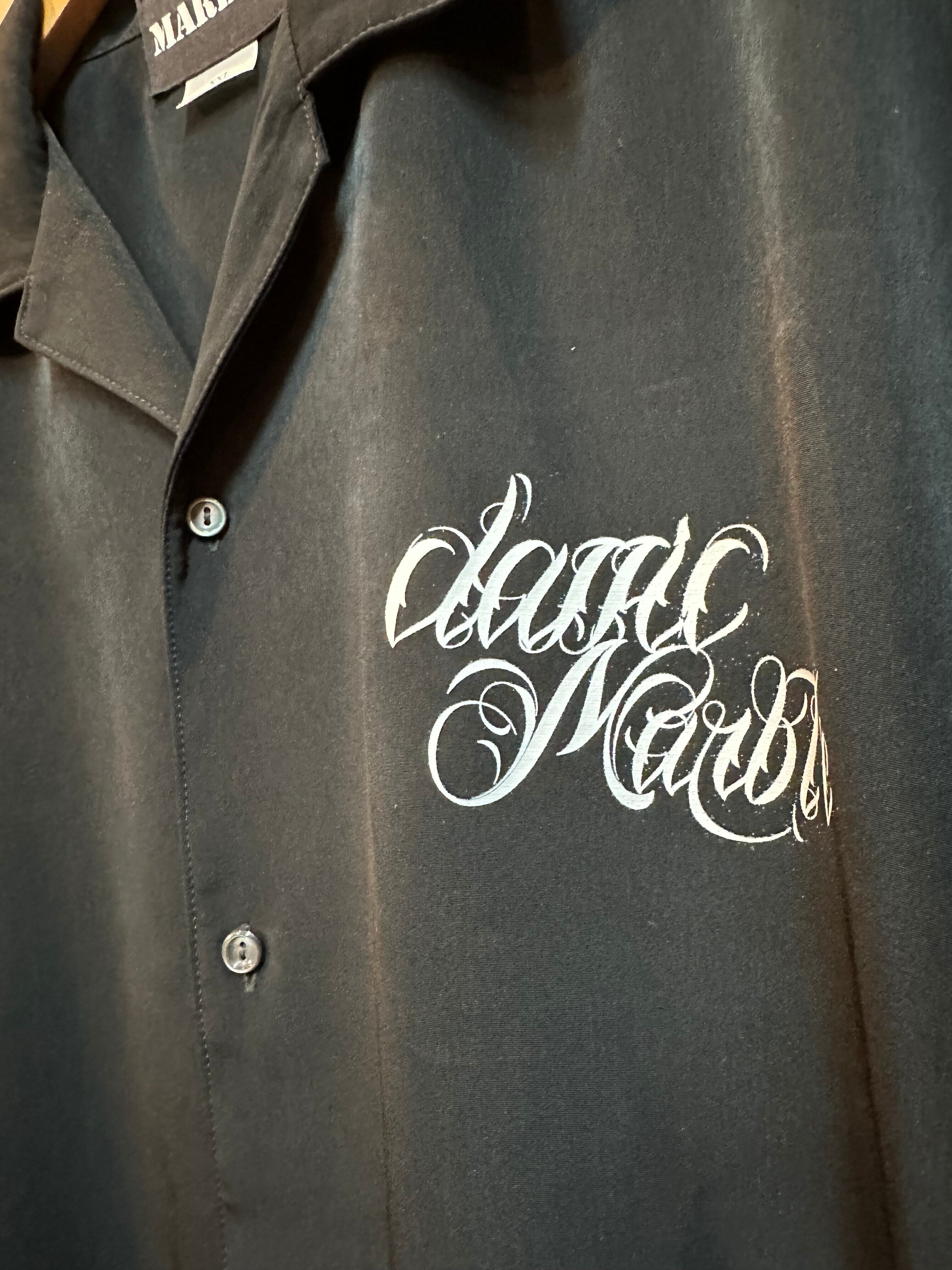 光沢感・高級感のある、機能性にも優れたオープンカラーシャツ。男らしいロゴデザインが目を引きます。
