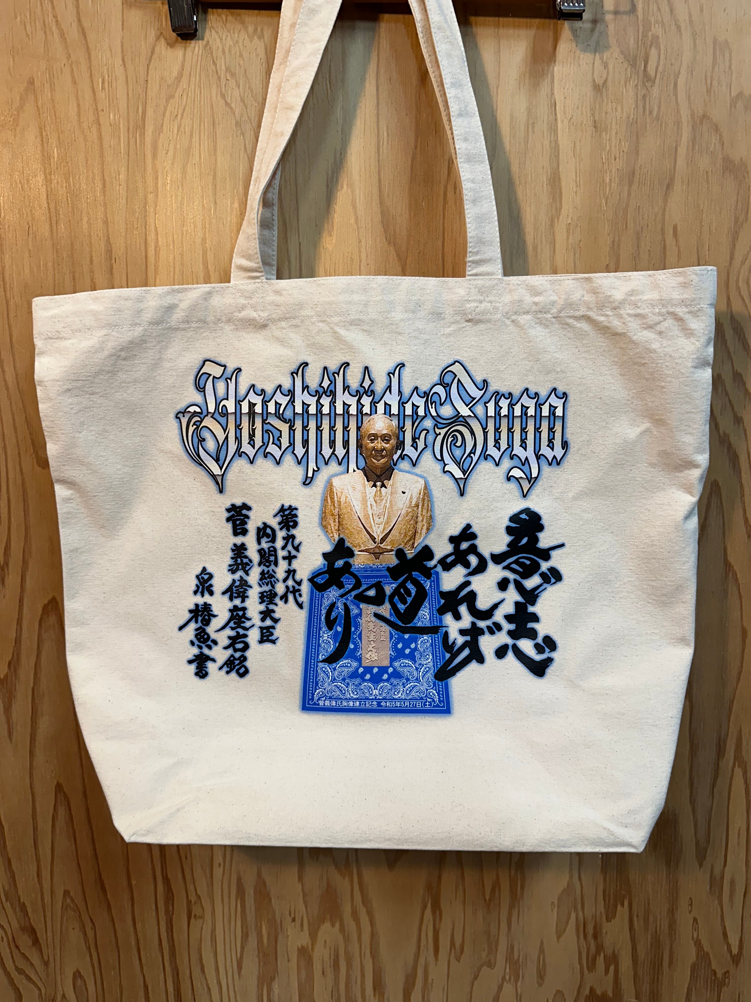 秋田県湯沢市出身の菅義偉元総理をストリートなデザインに仕上げたトートバッグになります。軽量でありながら丈夫な素材を使用しているため、普段使いやお出かけにぴったりのアイテムです。